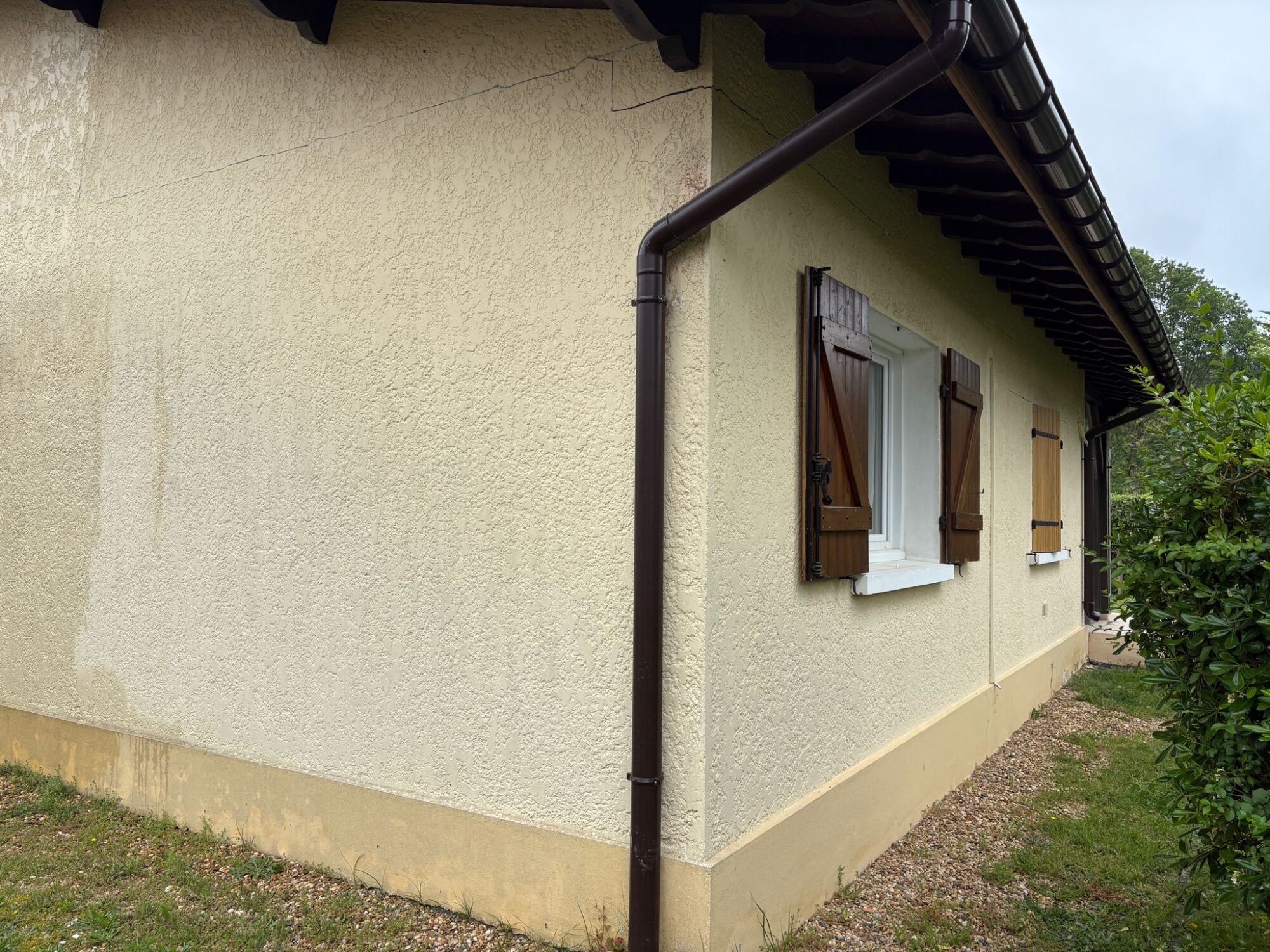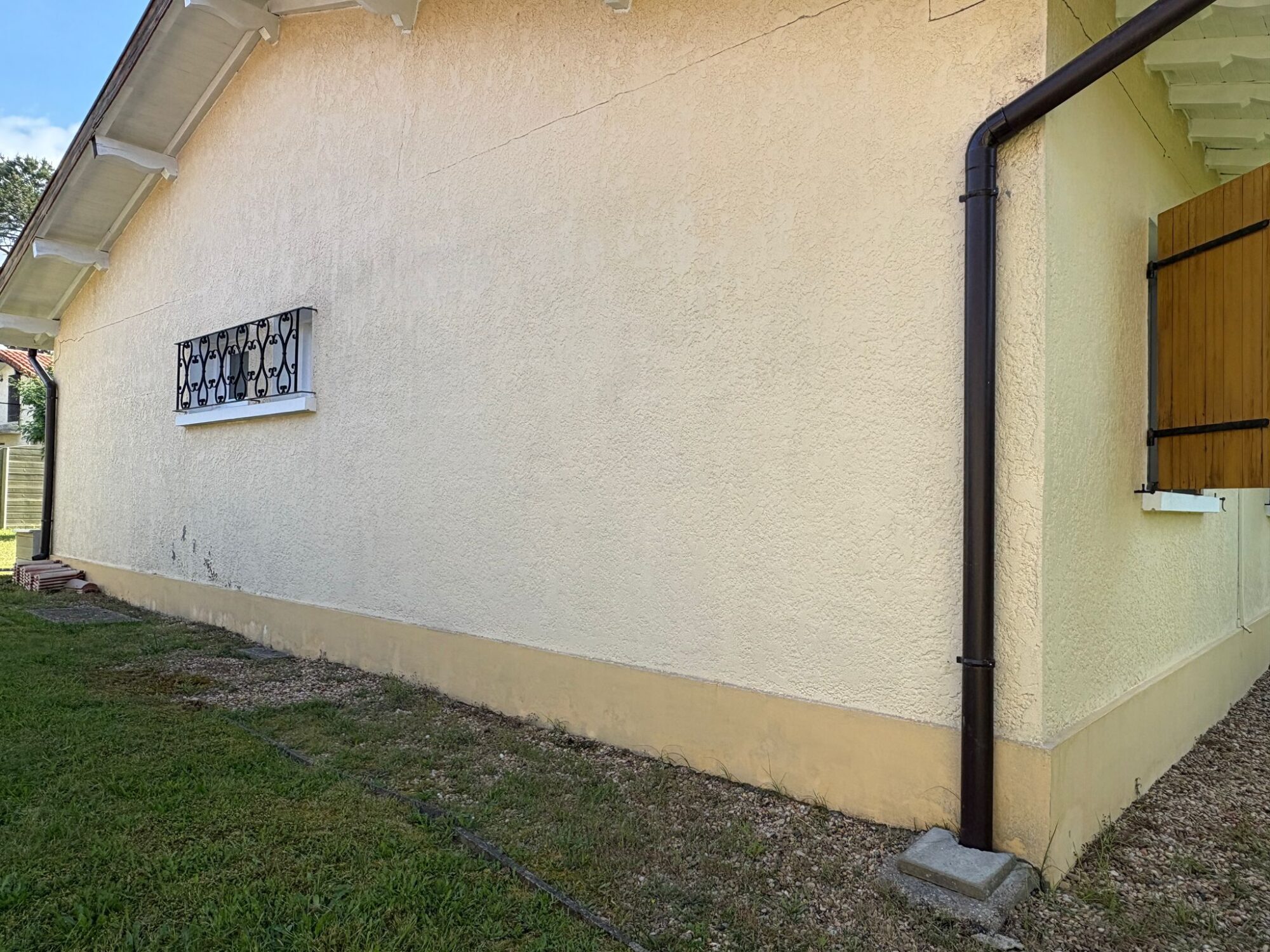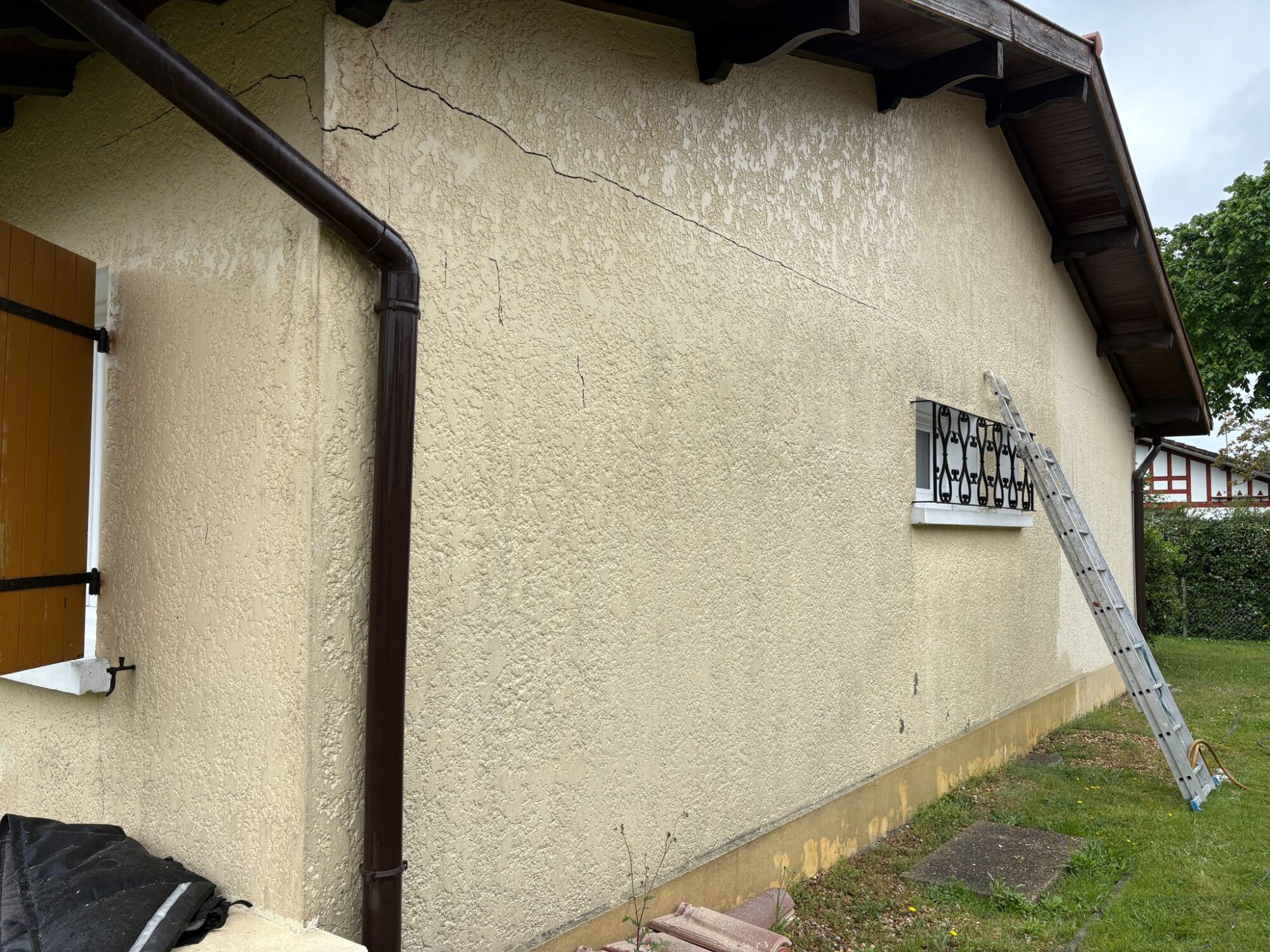 Cette analyse nous a permis d’expliquer à notre client la meilleure solution pour réparer durablement les fissures tout en respectant l’architecture d’origine de la maison. L’objectif était double : sécuriser et consolider les façades, puis appliquer un revêtement souple à base de résine, idéal pour masquer les défauts tout en redonnant un aspect neuf et une nouvelle teinte aux façades.