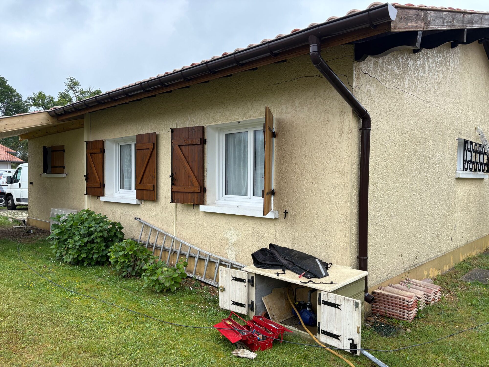 Le souci principal soulevé par le client était les fissures sur sa maison. Il a donc été conseillé de réaliser un agrafage des fissures les plus importantes en utilisant des fers à bétons pour consolider les réparations.