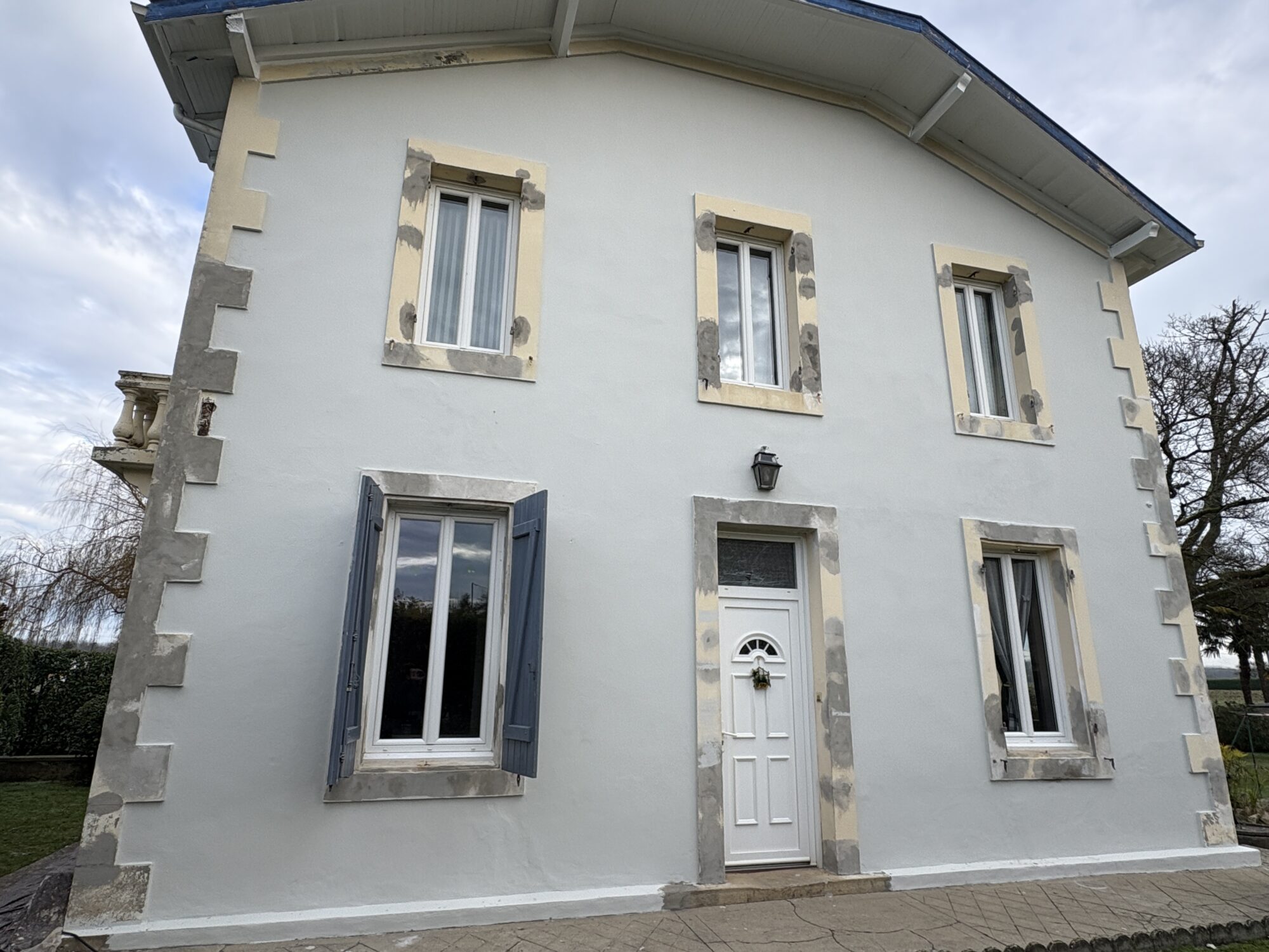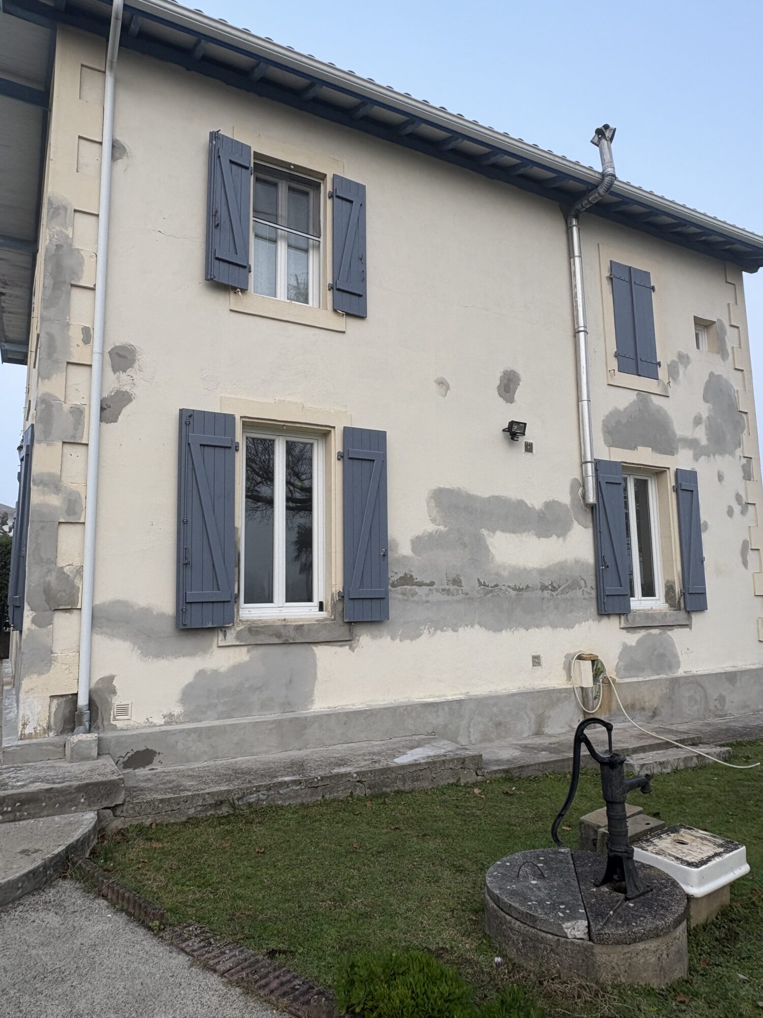 Les propriétaires, accompagnés de leur fils artisan spécialisé dans la rénovation de maisons, avaient déjà une vision très précise du projet. Leur objectif était de réaliser un ravalement de façades de qualité près de Dax, respectueux de l’architecture existante de cette maison à étage, tout en apportant une touche de modernité.