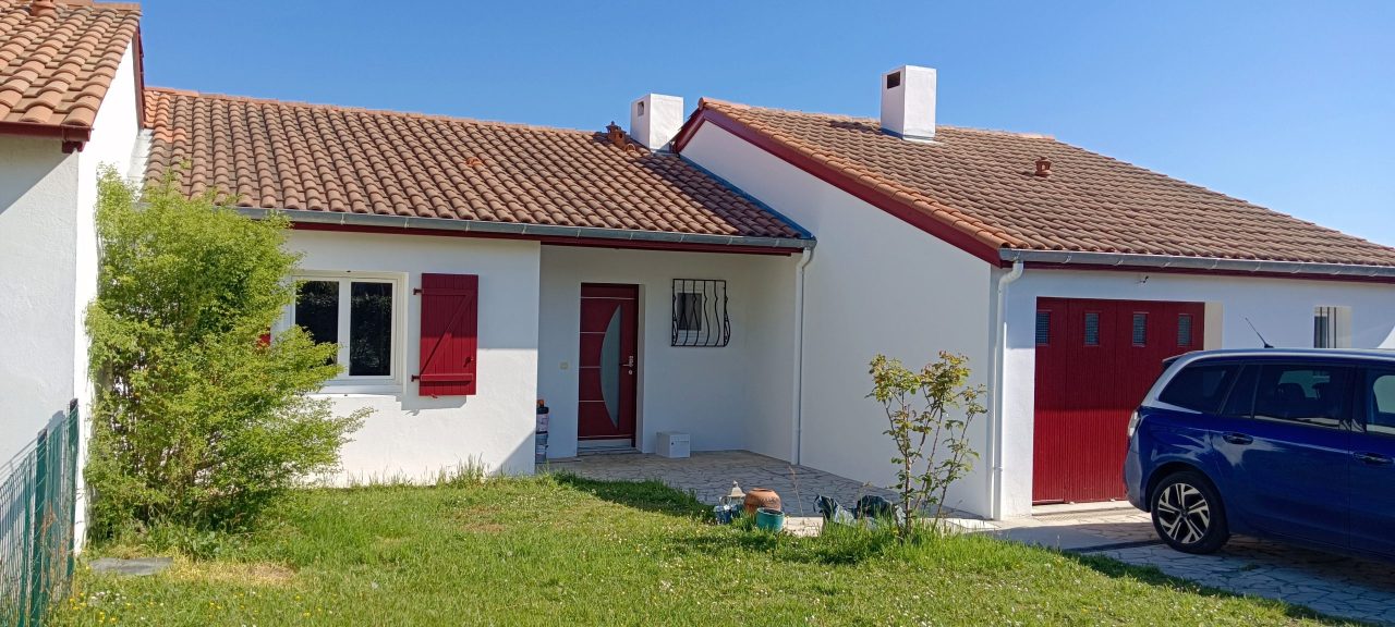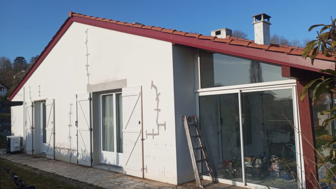 Suite à l’acquisition récente de sa maison située à Ustaritz (64480), notre cliente souhaitait entreprendre un ravalement complet des façades. Ce besoin était d’autant plus pressant qu’un maçon était intervenu pour procéder à l’agrafage de nombreuses fissures. Conscients de l’importance d’une rénovation esthétique et durable, notre client recherchait une solution de ravalement qui non seulement masquait ces réparations et uniformisait l’aspect de sa maison, mais qui assurait également sa protection contre les intempéries et le temps.