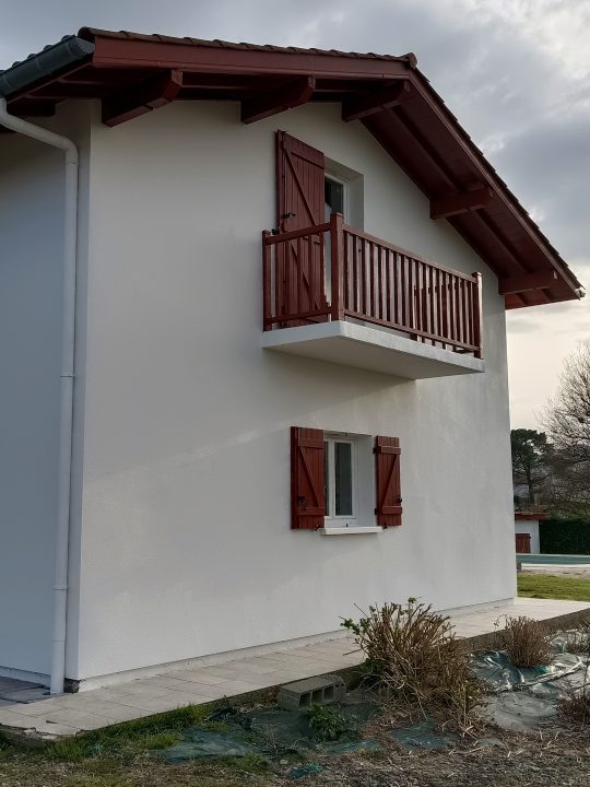 Ce chantier de rénovation de façade était aussi l’occasion de moderniser l’esthétique de la maison. Le client souhaitait changer la couleur de son enduit hydraulique blanc cassé par une teinte plus lumineuse comme le blanc. Grâce à notre expertise en ravalement de façades de maisons individuelles au Pays basque, nous avons appliqué une finition adaptée, alliant protection et mise en valeur durable des façades.