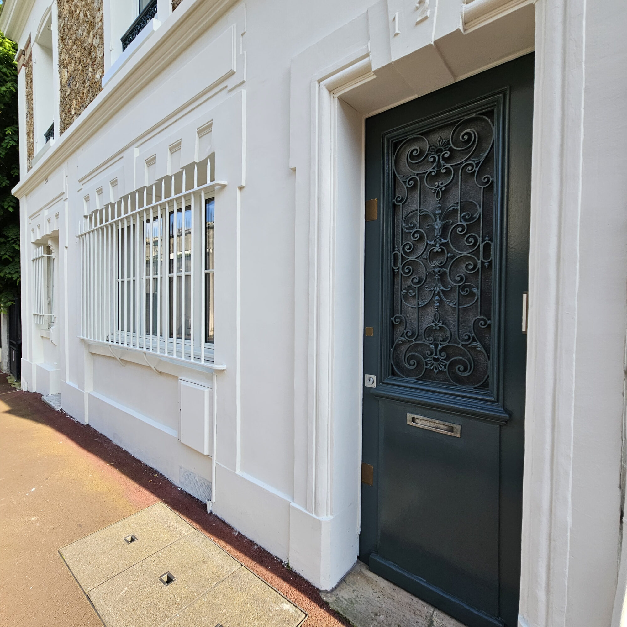 Située à Garches, cette maison en pierre meulière présentait des façades marquées par le temps, avec des peintures dégradées, des traces d’humidité ascendante et des éléments métalliques oxydés. Le propriétaire souhaitait rénover l’ensemble tout en respectant le cachet architectural de la meulière. L’objectif était double : préserver l’esthétique d’origine de la maison et traiter durablement les problèmes d’humidité afin de protéger les murs sur le long terme. Une attention particulière devait également être portée aux modénatures, ferronneries et menuiseries extérieures pour retrouver une façade soignée et harmonieuse.