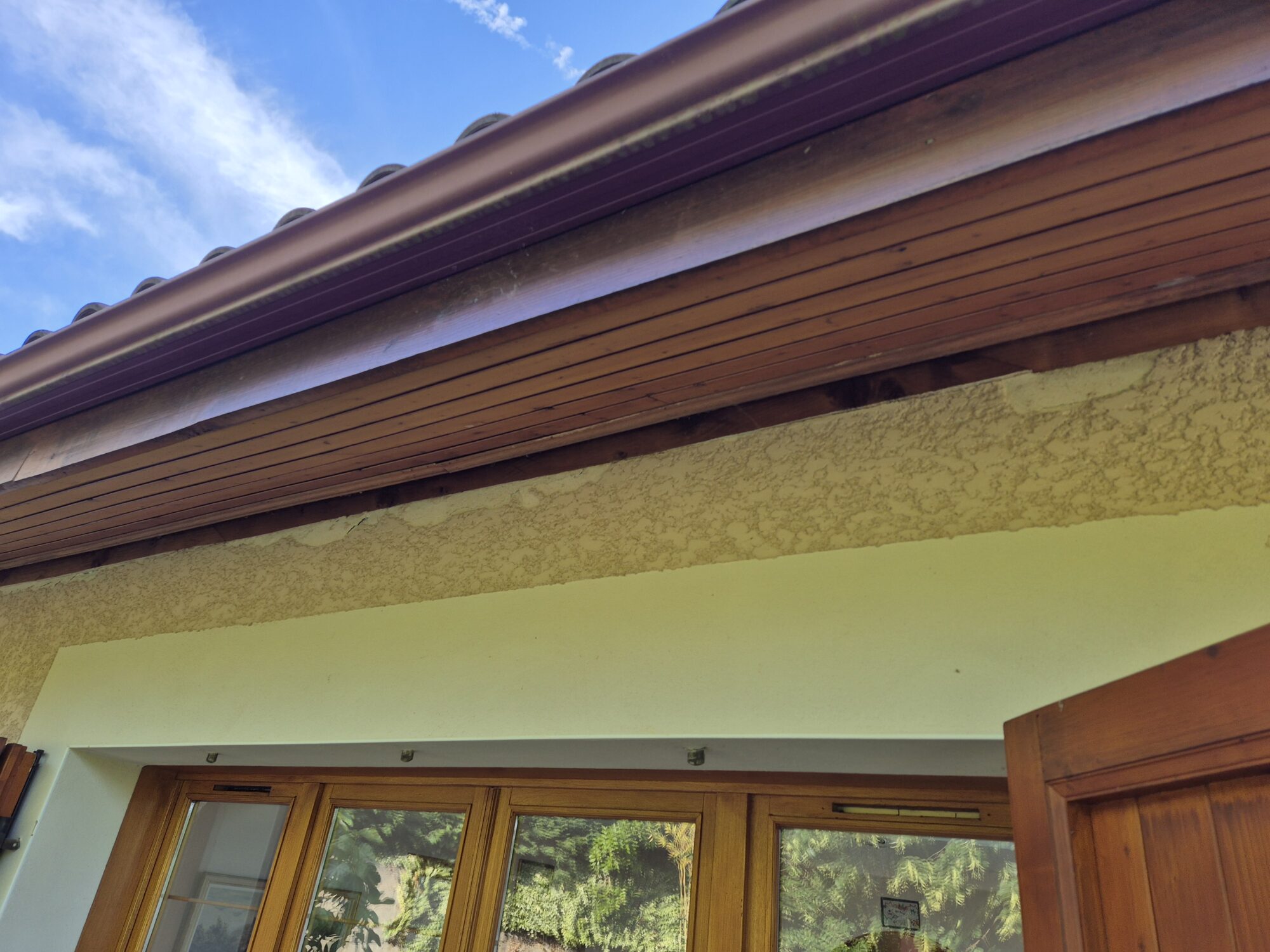 En tant que façadier spécialisé en rénovation, nous avons dans un premier temps observé l’ensemble des façades de la maison avant d’établir un diagnostic. Le crépis d’origine, à la finition écrasée, était inadhérente à de nombreux endroits, notamment au niveau des jonction avec les boiseries des dessous d’avancées de toit. En effet, le bois et les maçonneries travaillant différemment, cela conduit à des décollements. Le revêtement d’origine, très rigide, présentait de nombreuses fissures.