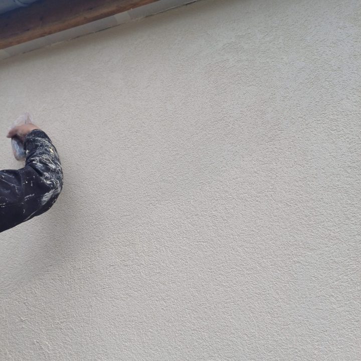 - Mise en œuvre du revêtement épais structuré VERTIQUARTZ GT 50 sur l’ensemble de la façade rue de la maison. Sa finition talochée est en effet idéale pour masquer les réparations et éviter le retour du faïençage et des microfissures.