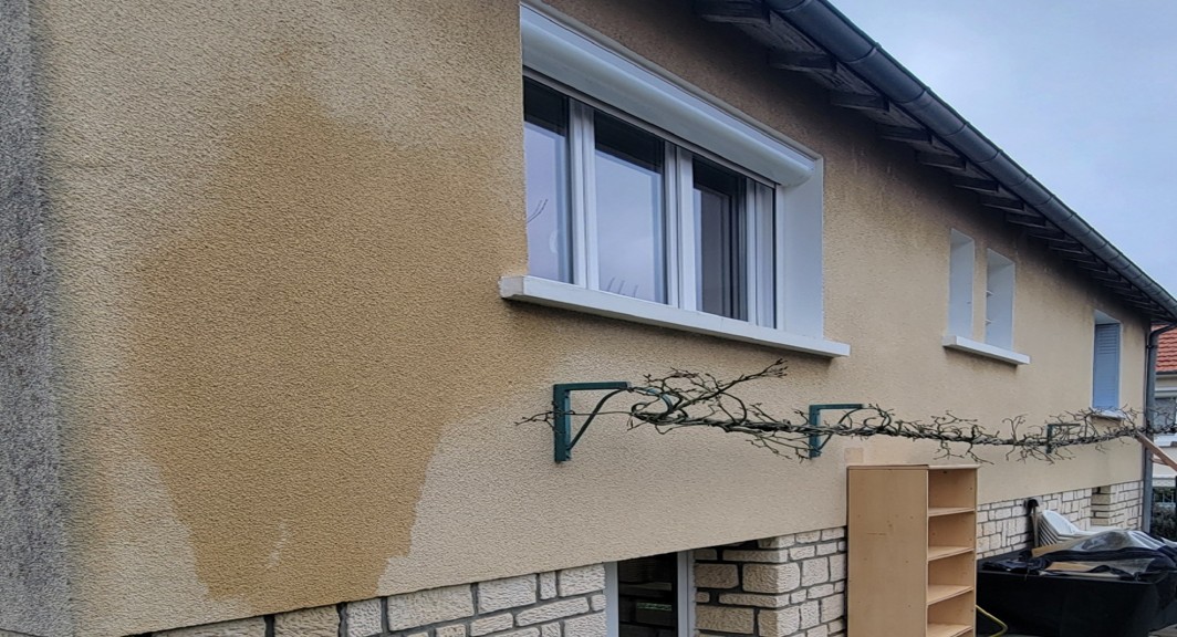 Comme beaucoup de façades sur Poitiers – et plus largement dans la Vienne, la façade était noircie par la pollution et les mousses. Un nettoyage de façade professionnel avec un produit décontaminant a été nécessaire pour assainir le support avant d’appliquer les produits de rénovation de façade.