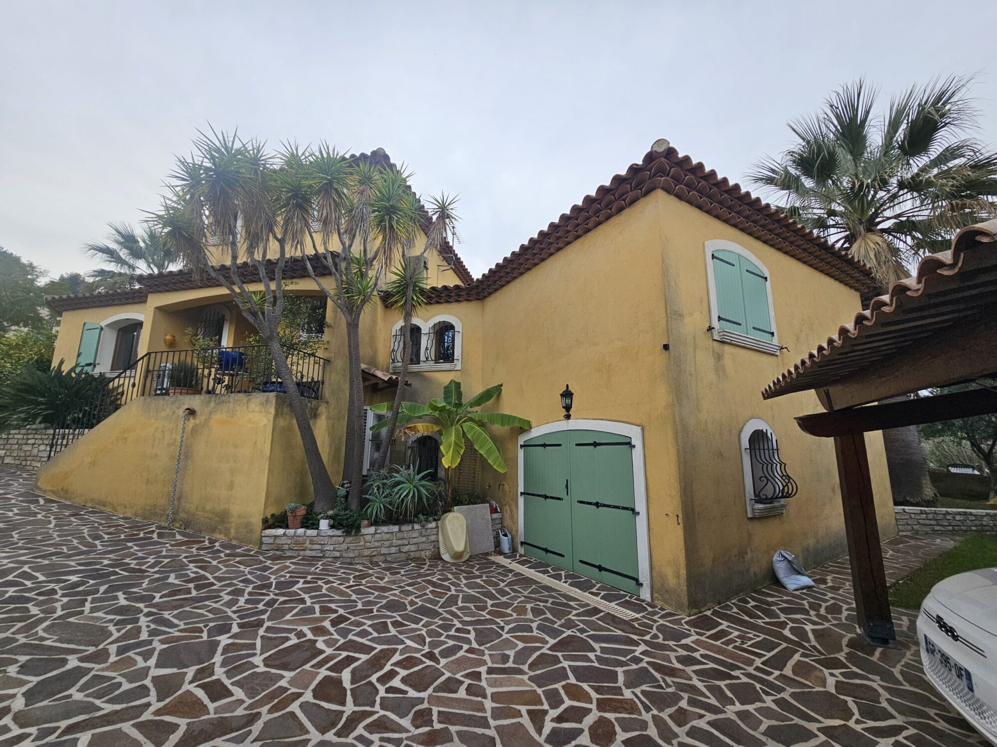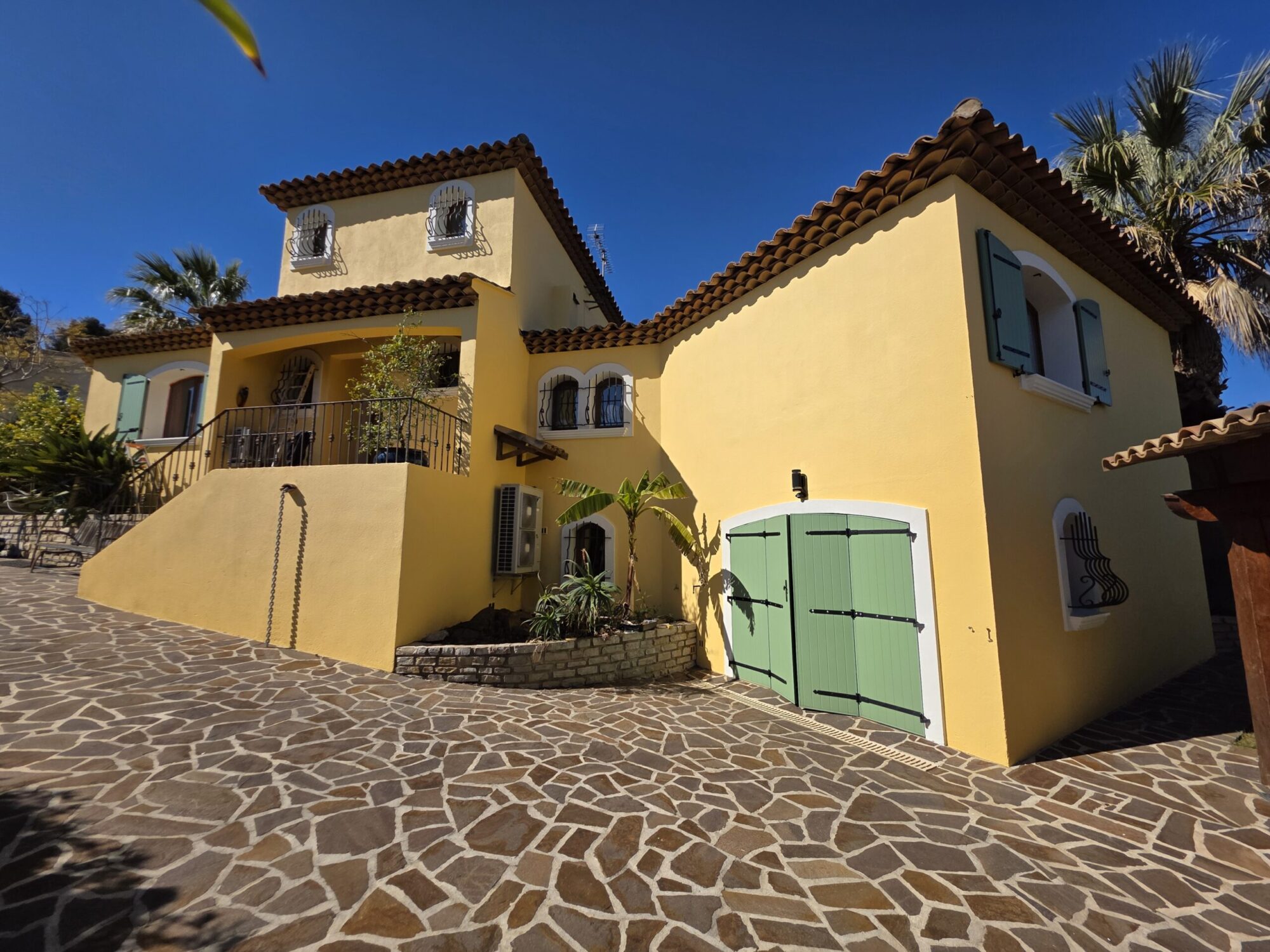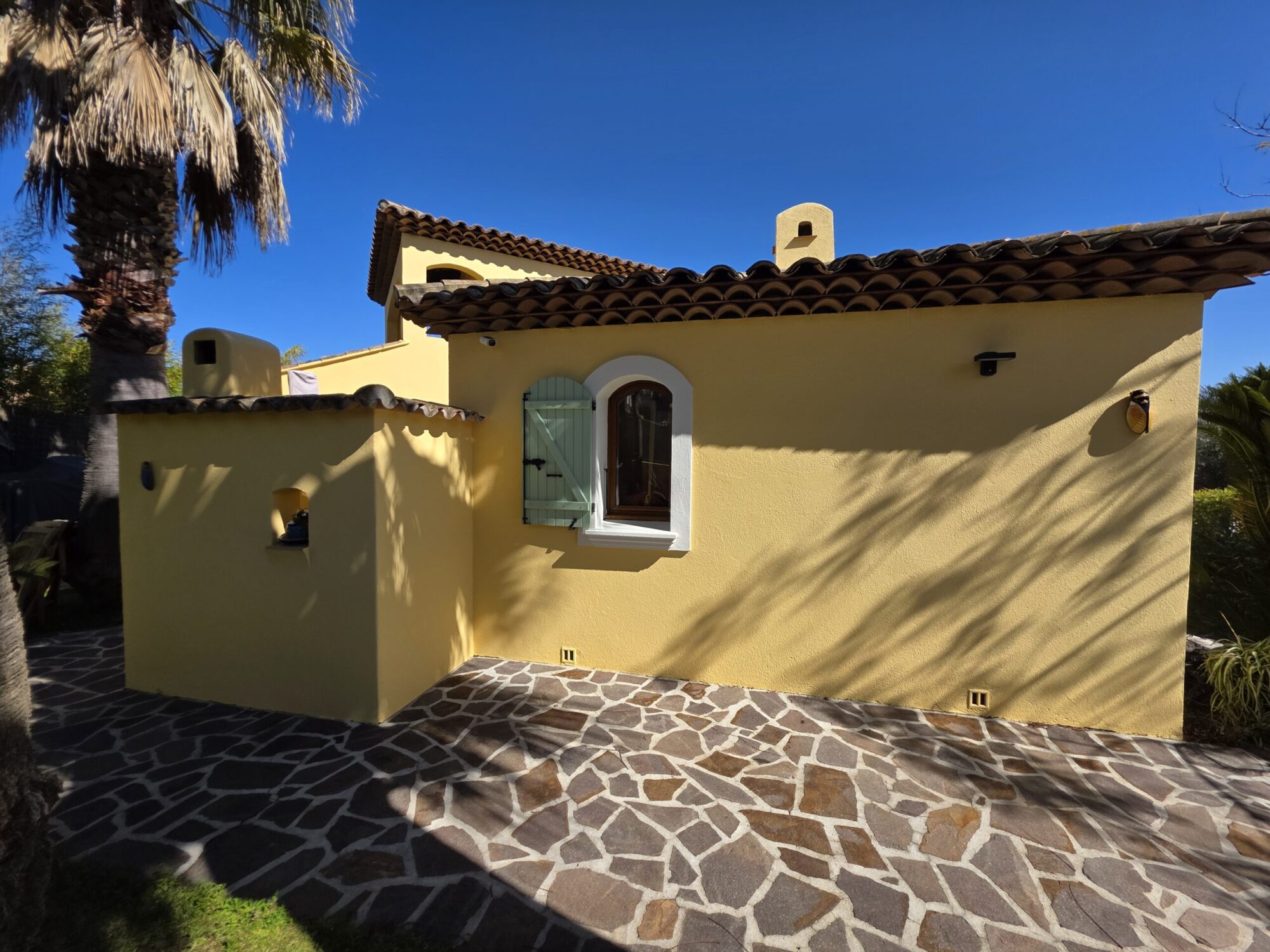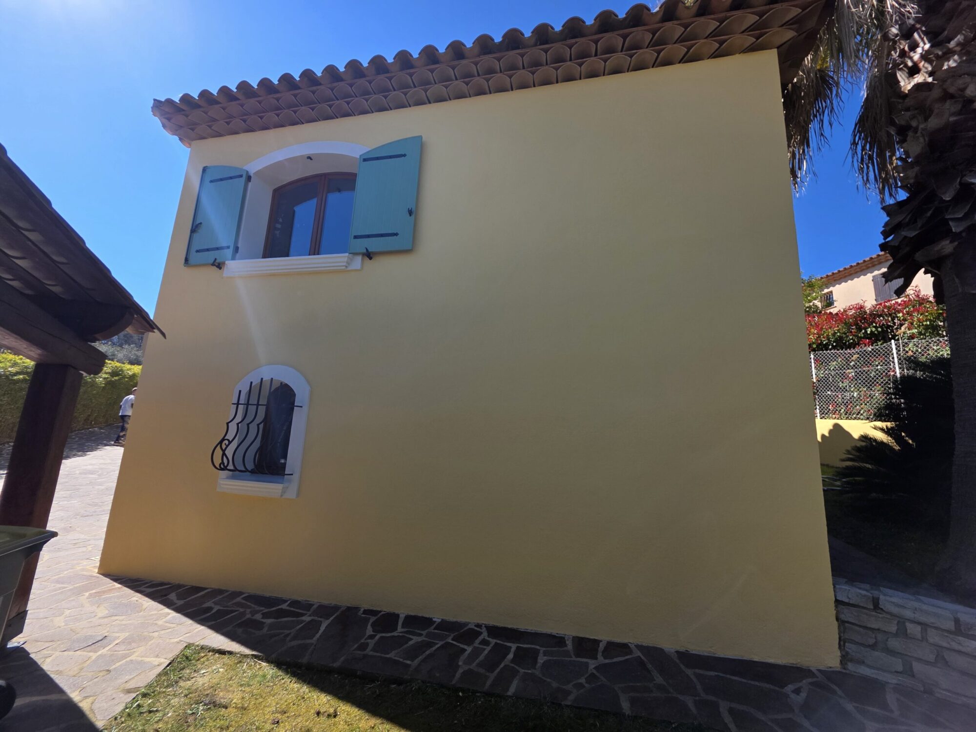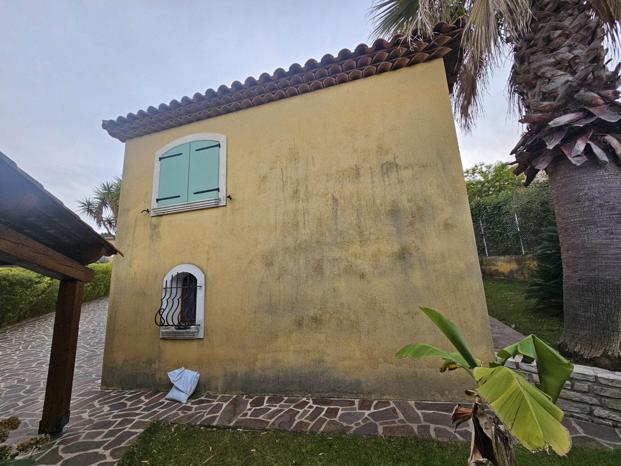 La maison n’avait jamais bénéficié d’une mise en peinture professionnelle, expliquant l’usure naturelle du revêtement d’origine face au climat méditerranéen particulièrement agressif.