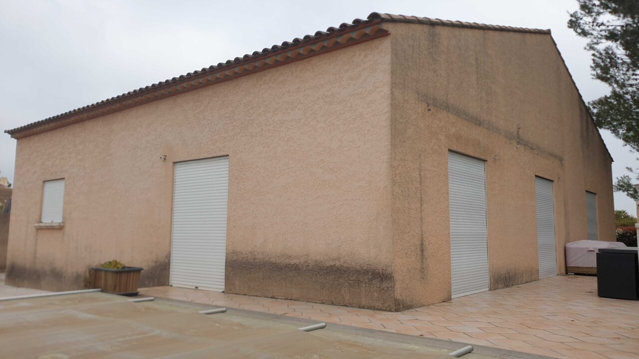 Les façades de la maison ont été soigneusement nettoyées avec un fongicide professionnel spécialement conçu pour éliminer algues, champignons et moisissures. VERTIKAL NETTOYANT CPC