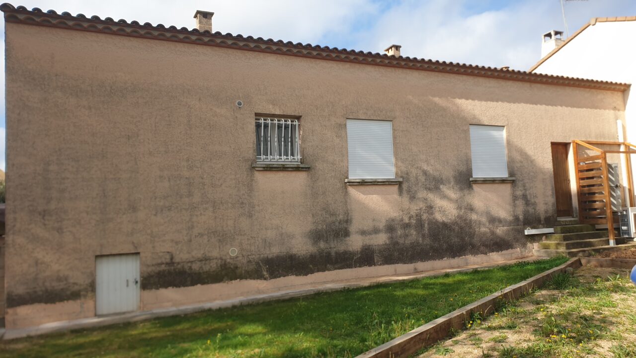 Avec le temps, mousses, lichens et traces noires dégradent les façades et les toitures. Des fissures peuvent également se former sur les enduits extérieurs comme il en était question pour les façades de cette réalisation.