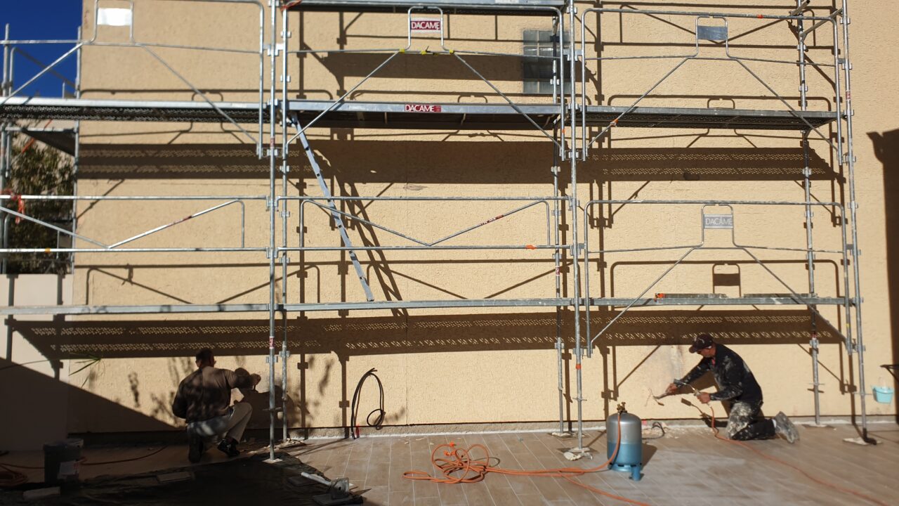 Cette étape, souvent sous-estimée, est pourtant essentielle : elle permet d’éliminer toutes les parties non adhérentes et de retrouver un support sain. Les façadiers de LEZ Façades ont donc entrepris un décapage mécanique rigoureux, adapté à la nature du support et aux contraintes de la façade.