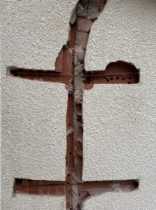 - Pose de tors torsadées Ø 6 mm (Ø 8 ou Ø 10 mm en cas de fissure de largeur importante) dans les saignées perpendiculaires.